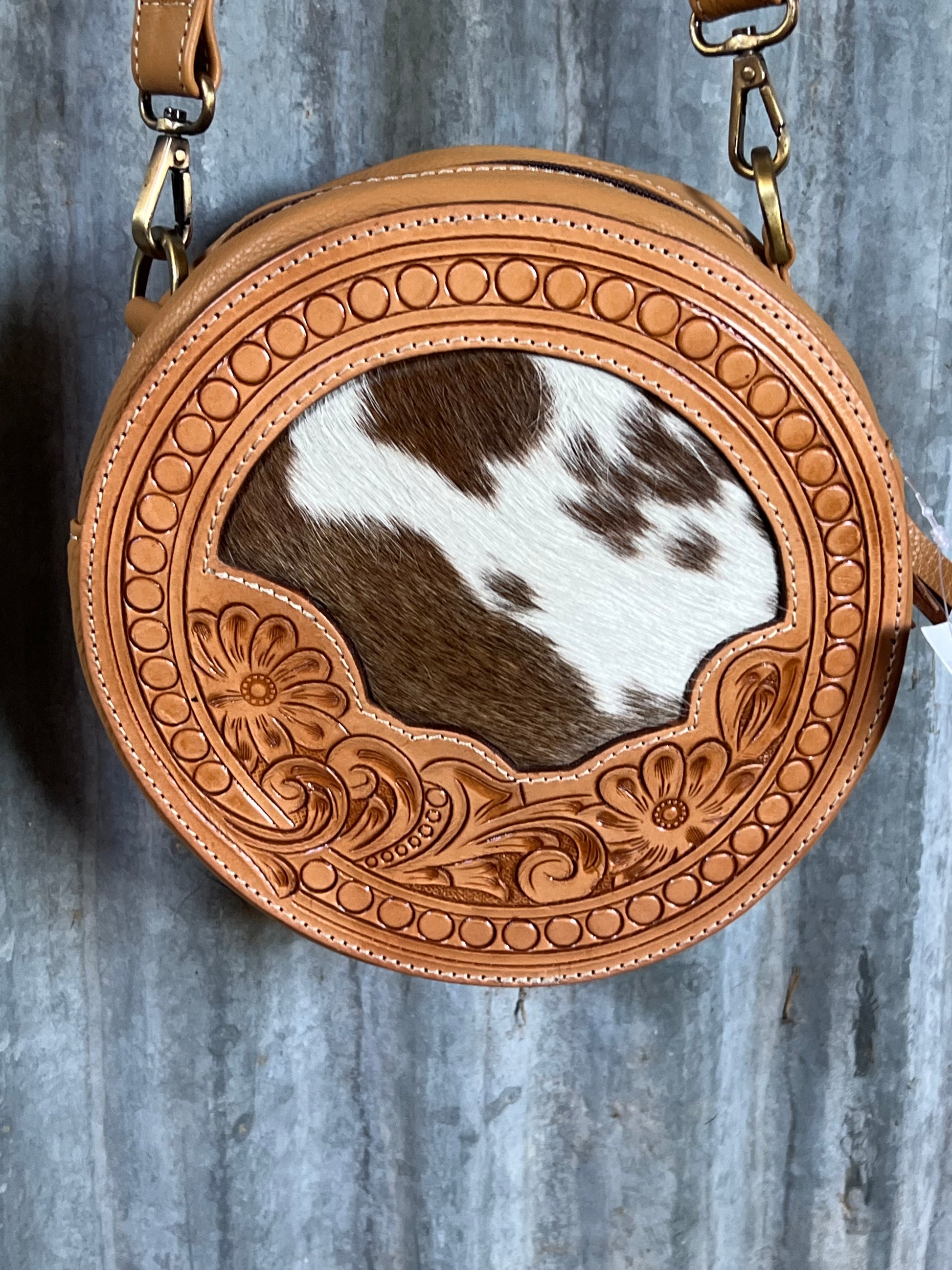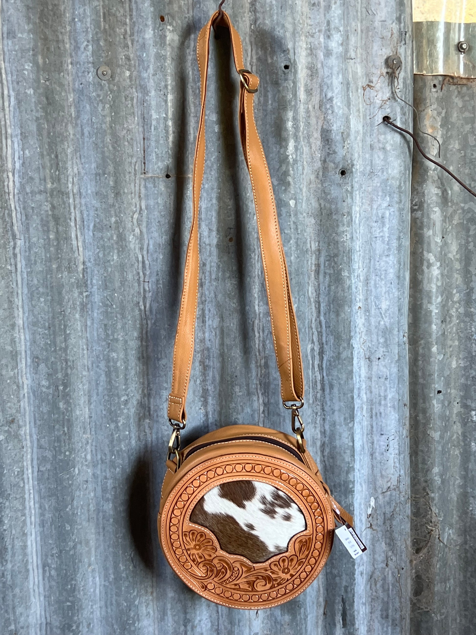 Halle is a gorgeous circular ensemble with intricate hand tooled details on the front panel adds touch of sovereignty and freedom to your everyday life. The long detachable sling strap makes this beauty a comfortable adornment which is surely a show stopper.